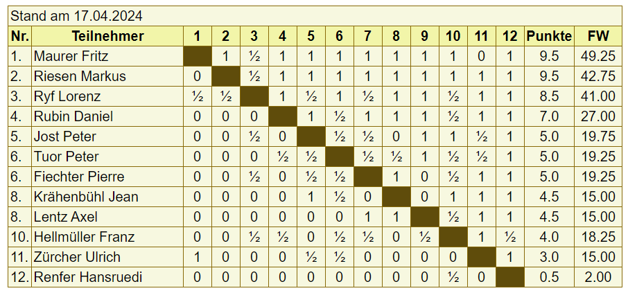 ALLE Partien sind per 17.April 2024 abgeschlossen und die Schluss - Ranglisten