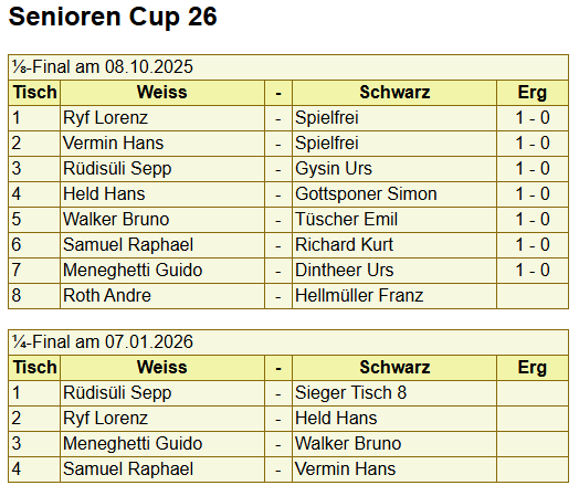 Der 1/4 Final vom 07.01.2026 ist ausgelost: