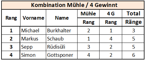 Mühleturnier in der Wertung nicht immer vom GM